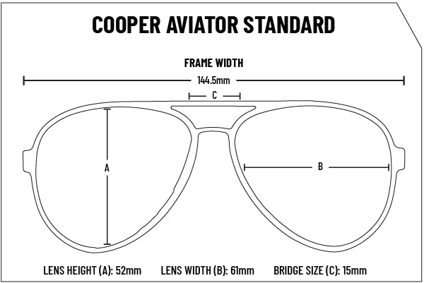 The Cooper Aviator Standard shows off the classic, aviation style in our widest frames. The Cooper Aviators will keep you comfortable and in your element.